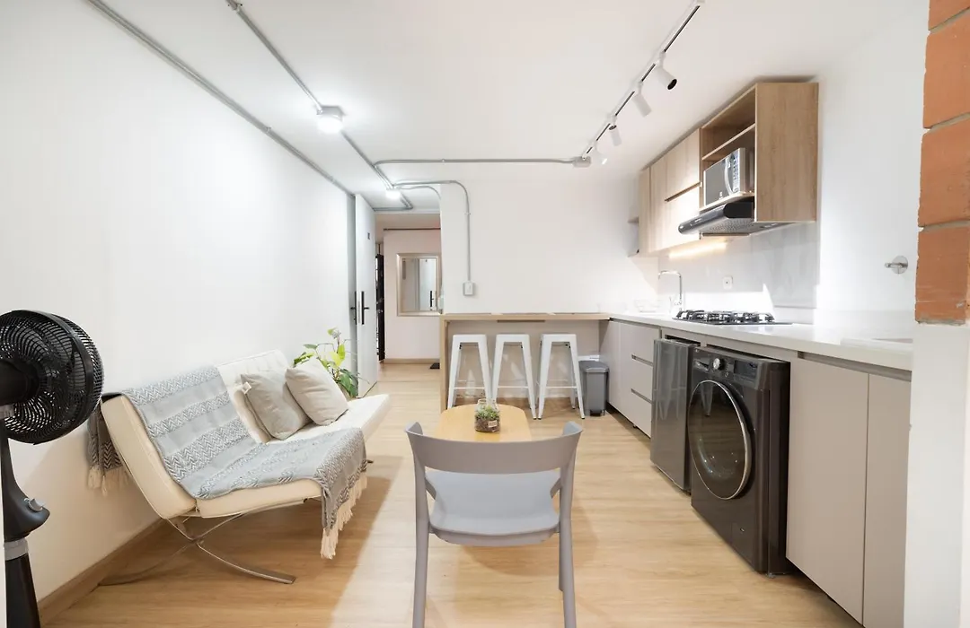 This apartment includes self-catering facilities like coffee and tea makers, a refrigerator, and kitchenware for guests' convenience. Poblado underground station is 950 metres away and Olaya Herrera airport is a 5-minute drive from the apartment.